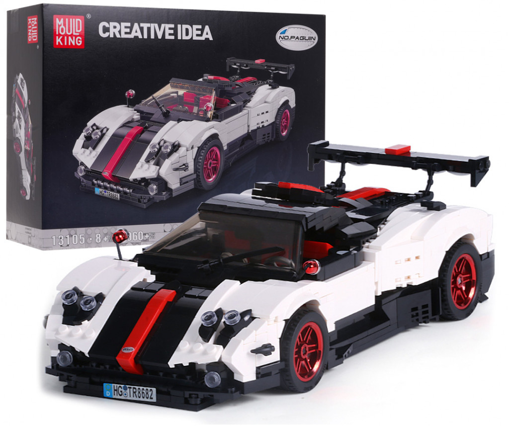 960 építőelemből álló készlet fehér sportautó saját készítéséhez.