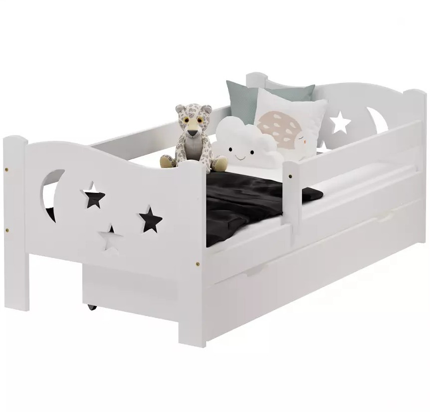 A Star fából készült gyermekágy nemcsak alvóhely, hanem gyermeke biztonságának és kényelmének központja is. Az egyedi fehér színű modellt úgy tervezték, hogy a legmagasabb minőségű alvást és esztétikus megjelenést biztosítsa, amely tökéletesen illeszkedik minden gyerekszobába.