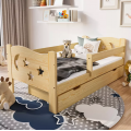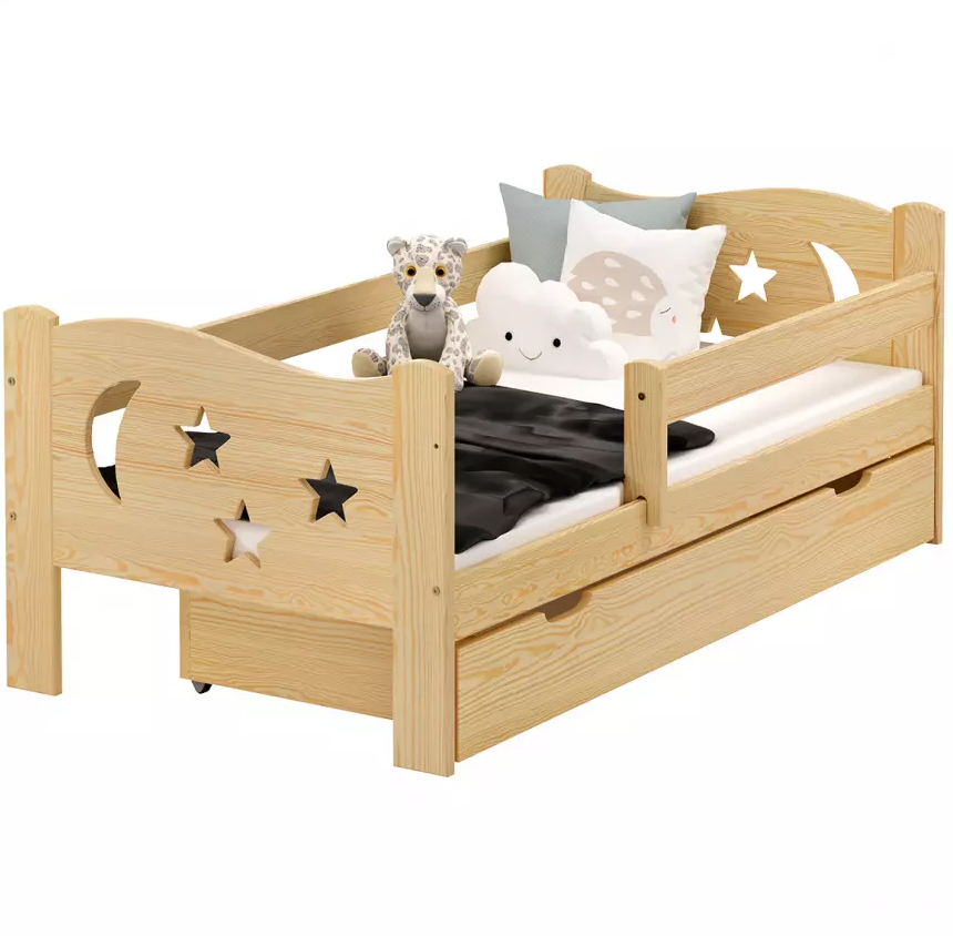 A Star fából készült gyermekágy nemcsak alvóhely, hanem gyermeke biztonságának és kényelmének központja is. Az egyedi fenyő színű modellt úgy tervezték, hogy a legmagasabb minőségű alvást és esztétikus megjelenést biztosítsa, amely tökéletesen illeszkedik minden gyerekszobába.