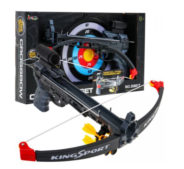 Gyerekeknek hat éves kortól ajánlunk egy nagy számszeríjat céltáblával és nyílvesszőkkel. Tökéletes játékhoz a szabadban és akár a házban is.