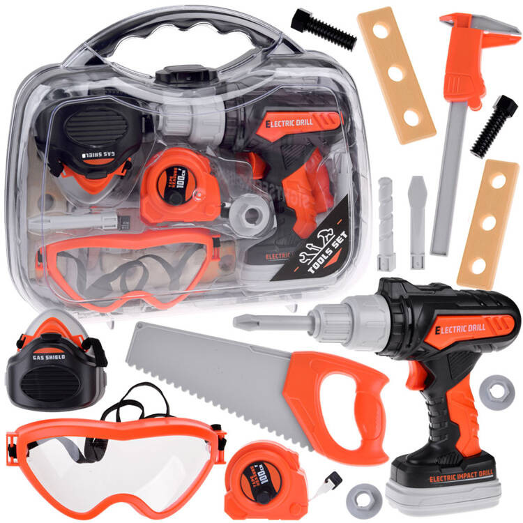 Egy bőrönd a szükséges eszközökkel minden kis otthoni szerelő számára szuper ajánlat. Mindig szükség van egy szerszámkészletre, be kell csavarni egy csavart, ki kell akasztani egy képet, megjavítani egy autót - mindig van tennivaló bőven. Ennek a készletnek köszönhetően minden azonnal javítható. A készlet teljes egészében műanyagból készült, fekete és szürke színekben, narancssárga betétekkel. A csavarhúzó mozgatható, mindkét irányban működik, csak rögzítse a megfelelő hegyet a csavar meghúzásához vagy lazításához. Egy féknyereg és egy centiméter lehetővé teszi a távolság és az átmérő mérését, a védőszemüveg pedig védi a kis segítő szemeit. Az egész készlet nagyon tetszetős, és valószínűleg minden kisgyermek számára tetszeni fog.