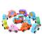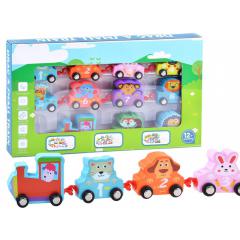 Az élénk színű favonatokon állatok és számok találhatóak . Ezáltal a gyermekek könnyen játékosan tanulhatják meg a számolást , szín és az állatok neveit .