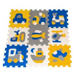 Bemutatunk egy 9 darabos habkirakó készletet, amivel gyerekeknek padlószőnyeget lehet összeállítani. Minden rejtvényhez tartozik egy színes jármű, amely eltávolítható. A szőnyeg 10 hónapos kortól alkalmas gyermekek számára. Egy puzzle mérete kb. 32 x 32 x 1 cm.