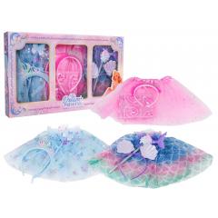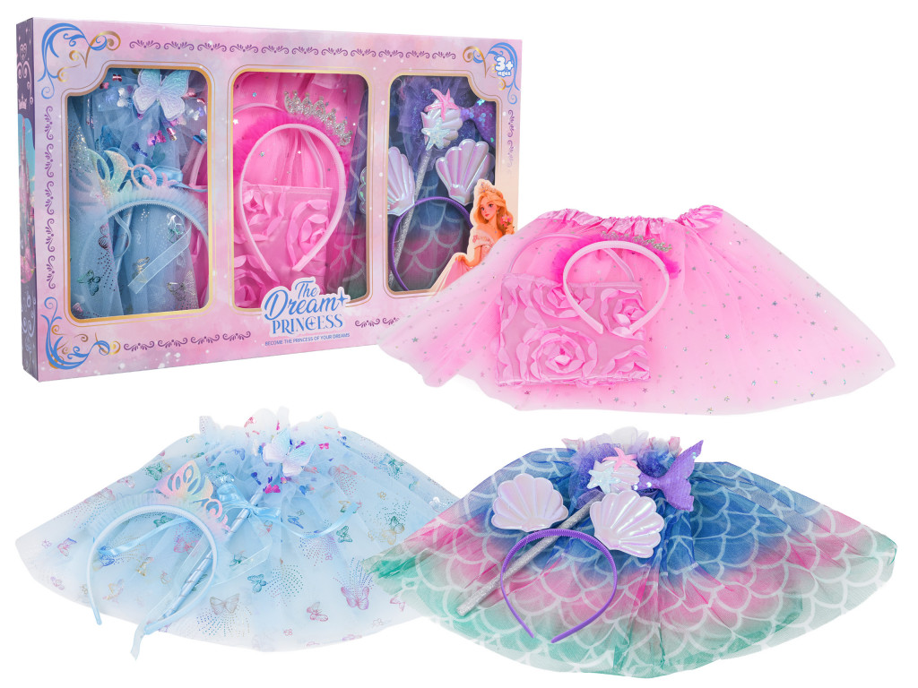 Színes kis hercegnős készlet hároméves kortól. A készlet aprólékos odafigyeléssel és élénk színekkel készült. Tartalmaz három színes tüll szoknyát, három fejpántot, egy kézitáskát és két varázspálcát. Ez a készlet tökéletes bálba, játékra vagy mindennapi játékra. Mostantól a kicsi hercegnőnek képzelheti magát.