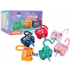 Egy oktató jellegű, színes vonat színes lakatkocsikkal tizennyolc hónapos kortól kisgyermekek számára. A legkiválóbb minőségű anyagokból készült, biztonságos a kisgyermekek számára, ez a készlet ötvözi a szórakozást és a tanulást. A készlet hat különböző járművet tartalmaz: mozdonyt, iskolabuszt, rendőrautót, tűzoltóautót, mentőautót és fagylaltos kocsit. A mozdony és a kocsik 0-tól 5-ig terjedő számokkal és a járművek angol nevével vannak jelölve (Vonat, Iskolabusz, Rendőrség, Tűzoltóautó, Mentőautó, Fagylalt). Ez segít a gyerekeknek a számok és szavak angol nyelvű elsajátításában. Minden kocsi alján kulcslyuk található, a készlet pedig hét kulcsot tartalmaz. Az egyik kulcs univerzális, és minden lakatot nyit, míg a többi egy adott járműhöz van rendelve. A kulcsok számokkal vannak jelölve, akárcsak a járművek, ami segíti a gyerekeket a logikus gondolkodás fejlesztésében és az asszociációkra tanít. A lakat teteje 360 fokban elforgatható a nyitás után. Ennek köszönhetően a kocsik összekapcsolhatók, hogy színes vonatot hozzanak létre.