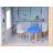 A bútorokat visszafogott színek jellemzik - természetes fa, fehér és kék árnyalatokkal.