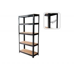Ez az ötszintes fekete polcrendszer funkcionális és tartós tárolási megoldást kínál különféle tárgyak számára. Horganyzott fémprofilokból és HDF lap polcokból készült , így garantálja a stabilitást és a tartósságot. Az egyes polcok alatti konzolok megerősítik a szerkezetet, míg a polconkénti maximális teherbírás 175 kg (egyenletes súlyelosztás mellett), a teljes polcrendszer maximális teherbírása pedig 875 kg, így biztosítva a stabilitást és a funkcionalitást. Az egyszerű összeszerelés gyors használatot tesz lehetővé.