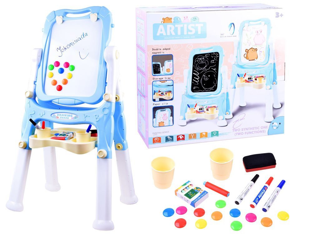 Ez a színes, interaktív tábla minden gyerekszoba elengedhetetlen terméke. A termék teljes egészében pasztell színű műanyagból készült. A tábla két oldallal rendelkezik, a fekete oldalon krétával, a fehéren filccel tud rajzolni gyermekünk. Utóbbira mágnesek is helyezhetőek. Továbbá található rajta egy tálca, amelyre az eszközök kényelmesen elhelyezhetőek.