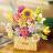 - tavaszi virágokból álló kompozíció, kb. 43 cm x 18 cm x 47,5 cm,