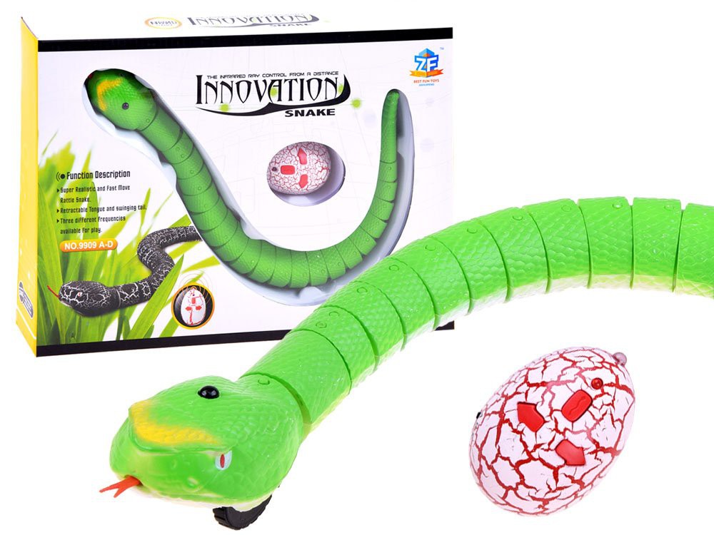 Lenyűgöző, ijesztő távirányítós kígyó. A kígyó vezérlése egy tojás alakú távirányítóval történik. A töltés USB-n keresztül történik. A távirányító 3 db AG13 elemmel működik. A kígyó nagyon valósághűen mozog.