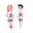 - Baba – Fiú – egy figura, oldalra fésült rövid fekete hajjal és kék szemekkel. Fekete mintás fehér pólót, fekete-fehér csíkos rövidnadrágot és fehér tornacipőt visel.