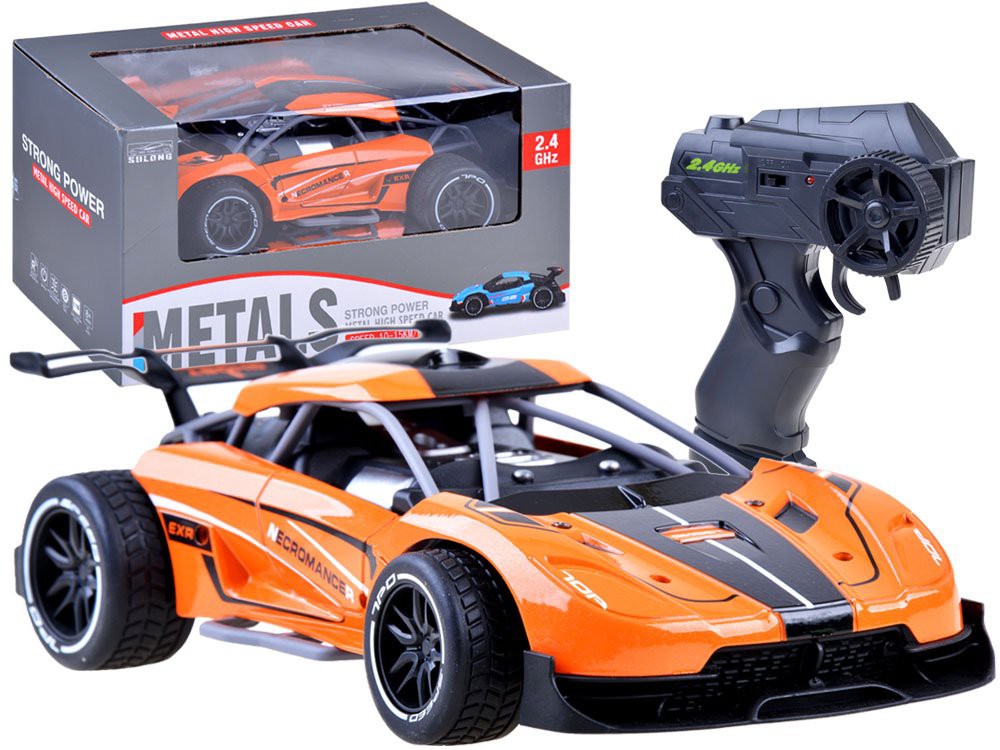 Ez a szupererős, villámgyors autó metálnarancs színben biztosan tetszeni fog mindenkinek aki szereti az autóversenyzést. Az autó távirányítóval vezérelhető. Az autó karosszériája fémből, míg a többi kiegészítő elem műanyagból készült, amitől ez a sportautó nagyszerűen néz ki. Mindent nagy precizitással készítettek, ami nagyon valósághűvé teszi az autót.