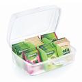 Ez a praktikus, 2 literes kapacitású, téglalap alakú teatartály ideális megoldás a teafilterek rendszerezett és átlátható tárolására. A kivehető és állítható zöld elválasztók segítségével a doboz több rekeszre osztható, így egyszerűen kategorizálhatók a különféle ízek vagy típusok. Az átlátszó műanyag fedél révén mindig jól látható, mi található benne, miközben zárható kialakítása védi a teafiltereket a nedvességtől és a szennyeződésektől.