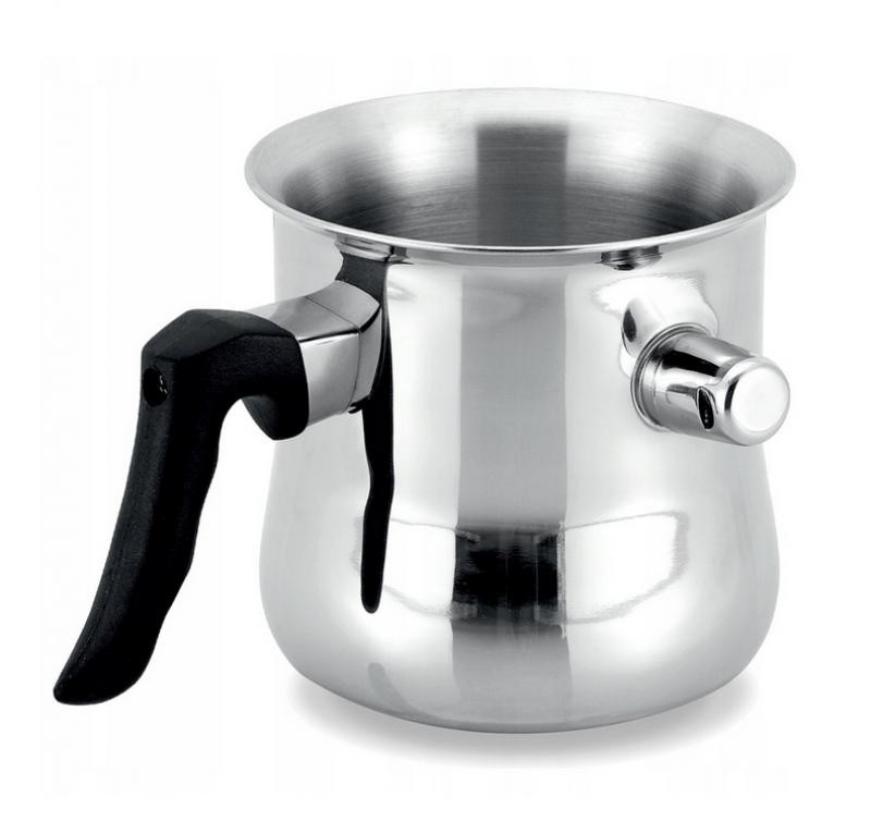 Rozsdamentes acélból készült. Duplafalú kivitel, amelynek segítségével a tej 80-90 °C-ig melegszik, ezáltal nem fut ki és nem ég le. A beépített síp segítségével sípszó jelzi a forráspontot. A belső fal mennyiségjelzővel van ellátva. A kényelmes műanyag fogantyú nem melegszik át  ennek köszönhetően könnyedén áthelyezhető bárhová.