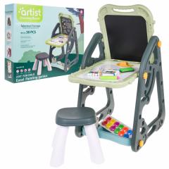 Ez a nagyméretű, multifunkcionális készlet két táblából áll: egy krétával rajzolható táblából és egy mágneses táblából, valamint egy székből, és 3 éves kortól alkalmas gyermekek számára. A táblakeret kétféleképpen állítható be. Az első változatban az egyik oldalon egy mágneses, a másikon egy krétával rajzolható tábla található. A táblák magassága is állítható. A második változatban egy asztal található, tetején és a mellette lévő falon két táblával. A fehér oldal filctollal való írásra vagy színes mágnesek felhelyezésére használható. A fekete oldal krétával való rajzolásra és színes mágnesek felhelyezésére is használható.