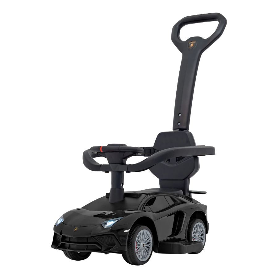 Tolókaros Lamborghini Aventador kisautó fekete színben