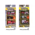 A készlet tartalma: 2 db tűzoltóautó, rendőrautó