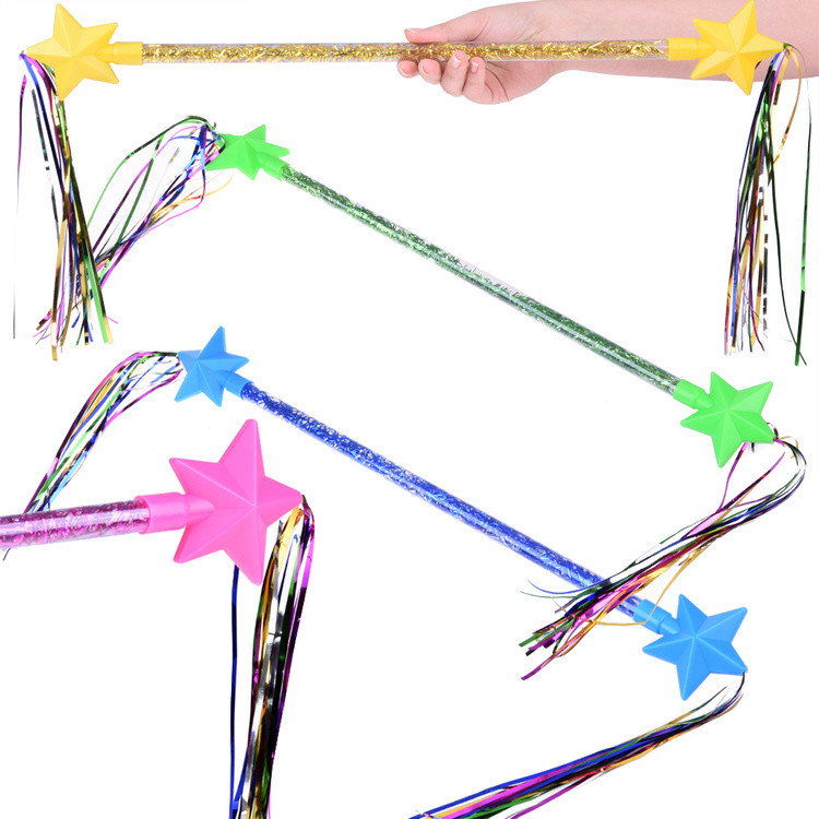 A pálca dekorációkkal teli átlátszó műanyagból készült. Mindkét végén csillagok vannak, amelyekből szivárványszalagok jönnek ki. Ennek köszönhetően a gyermek varázslatos mesefigurának érezheti magát tánc közben. A csillagok belsejében gyöngyök vannak, amelyek mozgatva csörgő hangot adnak ki. Ez további előny, mert lehetővé teszi a ritmus kialakítását edzés közben.