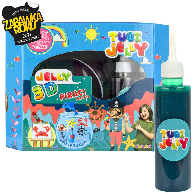 A Tubi Jelly PIRATES a Tuban cég legújabb javaslata egy színes, nagy tengeri témájú akvárium létrehozására. A készlet tartalmaz egy műanyag masszát, amely a megfelelő aktivátorral kombinálva lehetővé teszi, hogy háromdimenziós 3D-s figurákat készítsen.