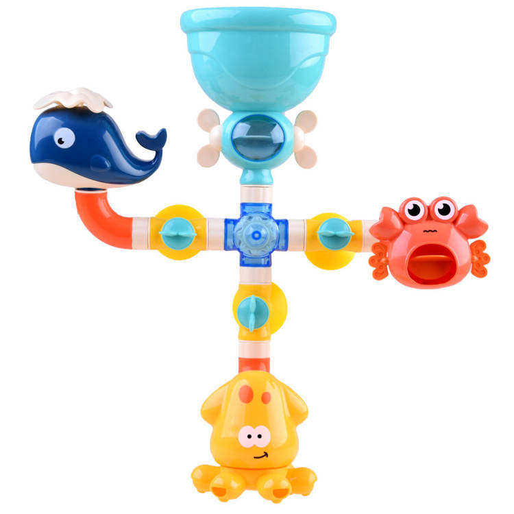 A vizet a tetejéről öntik a játékba, majd bevándorol, majd a lyukakon keresztül kifolyik, szökőkutat vagy vízesést hozva létre. A szerelt tölcséreknek köszönhetően a víz öntése egyszerű és kellemes. A biztonságos anyagokból készült szökőkút, egy színes játék vonzóbbá teszi a mindennapi fürdőzést és játékra ösztönöz minden gyermeket. A tengeri állatok polip, bálna és rák formái tengeri hangulatot kölcsönöznek a játéknak. A gyerekek szeretnek összeszerelni, szétszedni és különféle kombinációkat alkotni. Ez a fürdőjáték könnyen össze- és szétszerelhető, és sokféle kombináció létrehozását teszi lehetővé. Módosíthatja az állatok elrendezését, leválaszthatja az egyes csöveket, vagy a sárga gombokkal zárhatja vagy nyithatja a vízellátást.