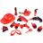 Minden elem műanyagból készült, jellegzetes piros színben. A legtöbb tartozék bábu, kivéve a fűrészt és a flexet.