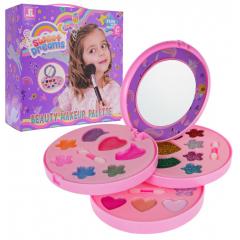 Gazdagon felszerelt sminkkészlet 5 éves kortól gyermekek számára. A kozmetikumok könnyen moshatók és biztonságosak a gyermekek bőrére. A készlet számos kiegészítőt tartalmaz, amelyek biztosan minden fiatal hölgynek tetszeni fognak. A kozmetikumok egy kihajtható dobozban találhatók, egy unikornis képével. A készlettel való játék serkenti a kreativitást, fejleszti az érzékeket és formálja az esztétika és a szépség érzékét.