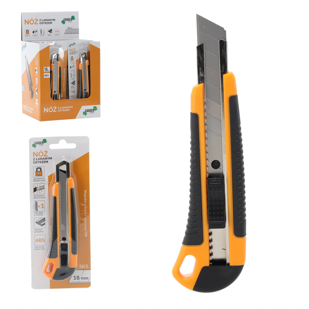 A 18 mm-es tördelhető pengéjű biztonsági kés megbízható és praktikus eszköz mind professzionális, mind otthoni felhasználásra. Strapabíró ABS műanyag házzal rendelkezik, amely könnyű, mégis ellenálló, míg az ergonomikus, fekete TPR markolat biztos fogást nyújt, csúszásmentes kialakítással.