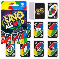 UNO ALL WILD! a mindenki által kedvelt kártyajáték egy másik változata. A játék klasszikus verziójában számokat vagy színeket kell párosítani, ebben a kiadásban azonban nem. Az UNO ALL WILD játékban minden kártya vad, így a játék gyors és kiszámíthatatlan. A látszattal ellentétben az ilyen szabályok nem könnyítik meg a játékot. A pakli speciális kártyákat tartalmaz, amelyek teljesen megváltoztathatják a játék menetét. A "Stop for Two" kártya, amely egyszerre két játékos számára állítja le a játékot egy helyett, vagy egy másik "Forced Switch" nevű kártya, amely lehetővé teszi a játékosok számára, hogy módosítsák a játék elrendezését, valamint néhány további kártya, amely hozzáad egy kis csavart a játékhoz.