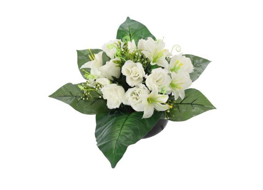 Vegyes színű liliomokkal díszített sírkő kompozíció. Gondosan komponált, hogy tiszteletteljesen emlékezzen meg szeretteiről, és ünnepélyes jelleget kölcsönözzön az emlékműnek.