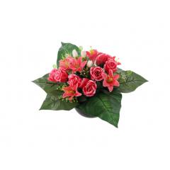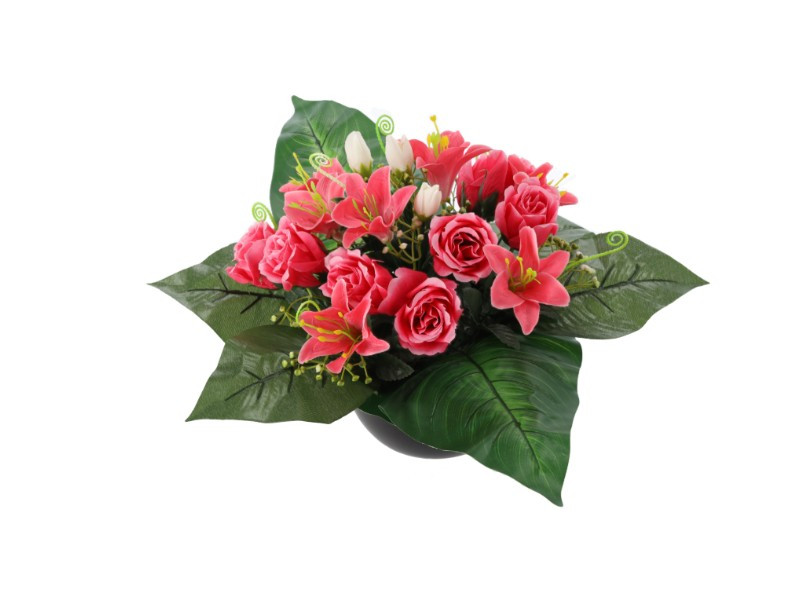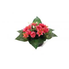 Vegyes színű liliomokkal díszített sírkő kompozíció. Gondosan komponált, hogy tiszteletteljesen emlékezzen meg szeretteiről, és ünnepélyes jelleget kölcsönözzön az emlékműnek.