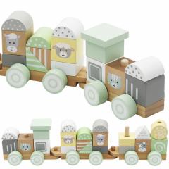 Ez a bájos fából készült vonat egy elragadó játék, amely minden gyermeket elbűvöl, és bevezeti őket a fantáziadús játék világába. Különböző formájú színes blokkokat tartalmaz, amelyeket állati képekkel díszítenek, például tehén, bárány, ló és macska, így a játék még élvezetesebbé válik. A kockák számtalan módon átrendezhetők, egymásra rakhatók, építhetők, elősegítve a kézi készségek és a gyermeki fantázia fejlődését.
