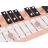 A natúr színű fa keretnek és a fekete-fehér csempék használatának köszönhetően a hangszer rendkívül elegánsnak tűnik.