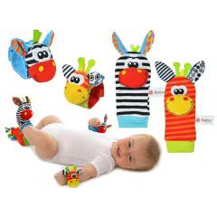 A csörgők puha plüssből készülnek, intenzív színekben. Minden állat szájában el van rejtve egy harang , amely kellemesen zörög, amikor a baba elmozdítja a lábát vagy a fogantyút. A kiálló fülek ösztönzik a megragadást és megfogást, ami elősegíti a gyermek kézi készségének gyakorlását. Játék közben a kisgyermeknek lehetősége van megismerni az anyagok különböző textúráit .